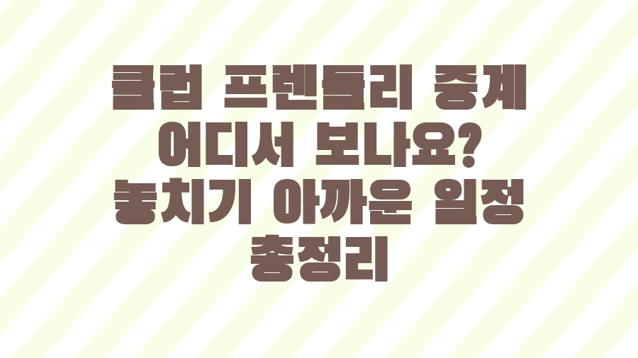 놓치지 않는 클럽 프렌들리 경기 일정 확인법