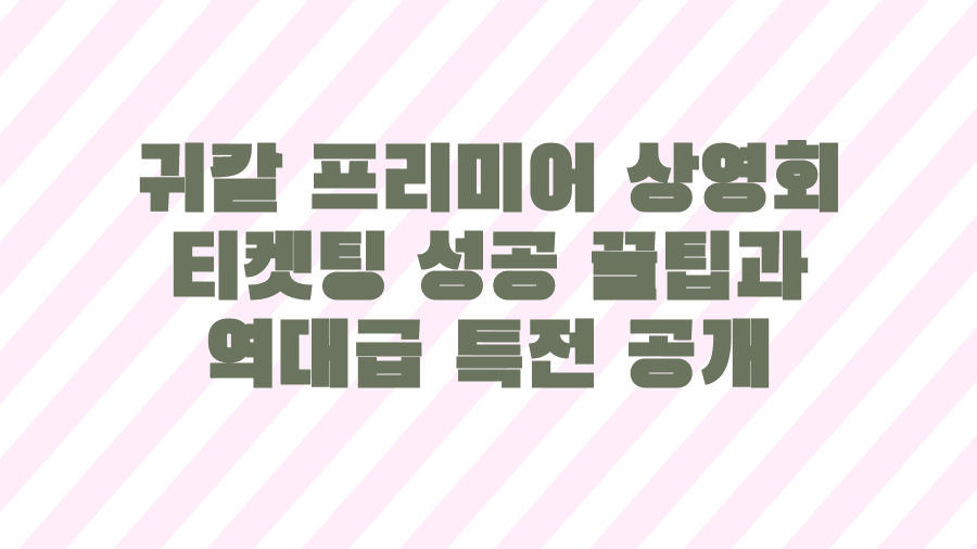 '귀멸의 칼날' 프리미어 상영회, 혹시 티켓팅 전쟁 예감하시나요? 인기 애니메이션 '귀멸의 칼날'이 드디어 극장에서 만날 기회가 찾아왔습니다. 그것도 개봉 전, 뜨거운 열기를 미리 느낄 수 있는 프리미어 상영회를 통해서 말이죠! 이미 많은 팬분들이 '귀칼 개봉일'을 손꼽아 기다리며 관련 정보를 탐색하고 계실 텐데요. 이번 포스팅에서는 설레는 마음으로 '귀칼 상영회 일정'을 확인하고, '귀칼 티켓 예매'에 성공하기 위한 모든 정보와 함께 놓치면 후회할 '귀칼 특전'까지 상세하게 알려드릴게요. 마치 보물찾기를 하듯, 여러분의 성공적인 '귀칼 이벤트' 참여를 위한 꿀팁들을 아낌없이 풀어놓을 테니, 집중해 주세요!