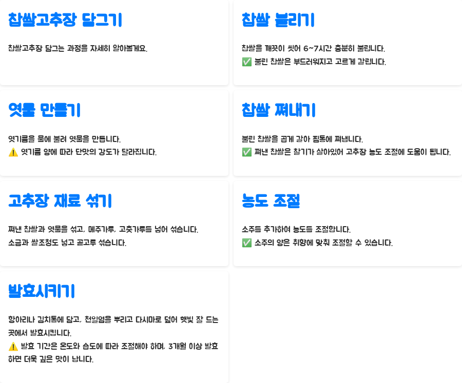 여기서 잠깐! 더욱 맛있는 찹쌀고추장을 만들기 위한 몇 가지 팁을 알려드리겠습니다.